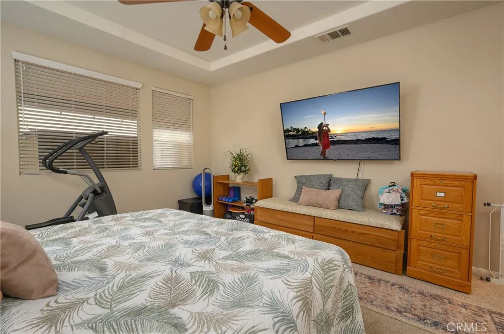 Welcome to this stunning Milano Model home located in The Oasis, a premier 55+ guard-gated resort community. Perfectly positioned along the golf course, this property offers breathtaking views of the 15th green and 16th tee box, visible from the great room, kitchen, dinette, and primary suite. Step inside to a beautifully entry that opens to an expansive great room showcases coffered ceilings, a stylish tile fireplace, and panoramic golf course views, creating the perfect setting for both relaxation and entertaining. Steps away is an exclusive office area and study for collectables and excellent storage. The gourmet kitchen is designed for both function and style, complete with a large center island, quartz countertops, double ovens, upgraded cabinetry, and a breakfast bar. The adjacent dinette area offers direct views of the covered patio and lush fairways beyond. The generously sized primary suite is a true retreat, featuring large picture windows, and serene golf course vistas. The luxurious en-suite bath includes dual vanities with abundant cabinetry, a dedicated makeup area, a separate shower, and a spacious walk-in closet with mirrored doors. Additional highlights include a versatile office or optional third bedroom with double doors, a large guest bedroom with additional workspace or retreat, and an adjacent full bath that can serve as a second primary suite. The well-equipped laundry room offers ample cabinetry, complemented by an oversized utility room providing exceptional storage and pantry space. Enjoy outdoor living with a low-maintenance backyard that backs di