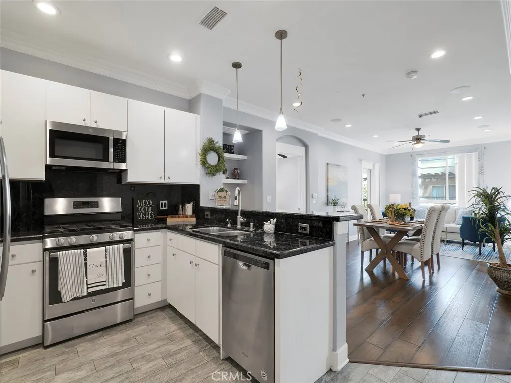 Welcome to this beautifully maintained 2-bedroom, 2-bathroom condo located in the heart of Valencias highly desirable Town Center community. This thoughtfully designed home offers an ideal layout with bedrooms on opposite wings, providing excellent privacy for residents or guests. Step inside to a warm and inviting living space where a well-appointed kitchen seamlessly flows into the living roomperfect for both everyday living and entertaining. The kitchen is designed for functionality and comfort, creating a welcoming hub of the home. Recessed lighting throughout enhances the bright, modern feel. Enjoy your own private outdoor patioan ideal spot for morning coffee or evening relaxation. Additional highlights include two designated covered parking spaces conveniently located side-by-side. Situated just moments from premier shopping, dining, and entertainment, this location offers unbeatable convenience with easy access to both the 5 and 14 freeways. A fantastic opportunity to own in one of Santa Claritas most walkable and vibrant areas.