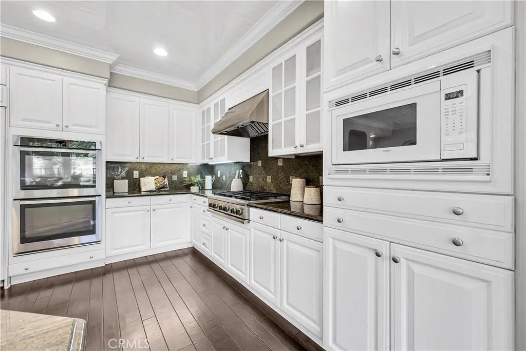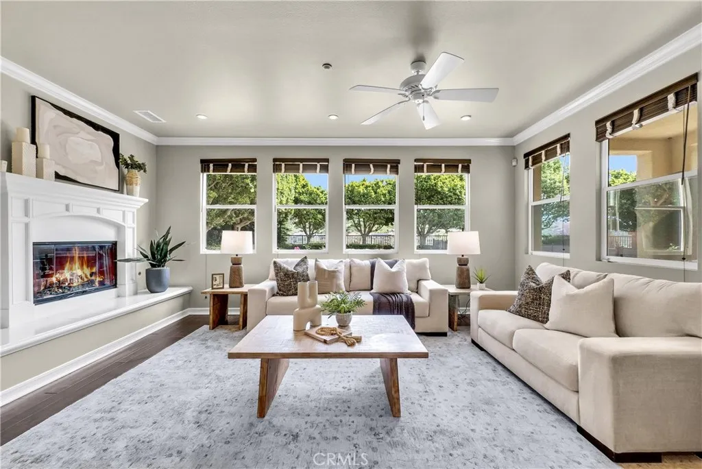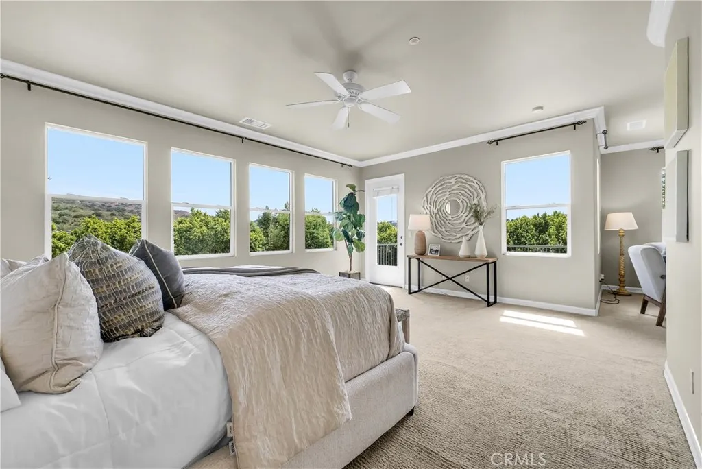 Beautiful pool home situated in the highly sought-after Olinda Ranch community of Brea. This spacious residence features 5 bedrooms, a home office, 5 bathrooms, and a 3-car garage, offering a highly versatile floor plan. The main level features a private bedroom with its own bathroom, along with a separate office paired with a bath that can easily be converted into a second downstairs bedroom. Ideal for guests or multi-generational living. The home also features a dramatic two-story ceiling in the living room and formal dining area, creating an open and airy atmosphere filled with abundant natural light. The layout flows seamlessly into the kitchen & the family room, with a butlers pantry connecting the formal dining area to the kitchen, offering both convenience and an elegant transition for entertaining. The kitchen is well-appointed with a built-in refrigerator, gas cooktop with range hood, double oven, built-in microwave, walk-in pantry, reverse osmosis drinking system, and wine refrigerator. Wood and tile flooring enhance the main level, while the upper level bedrooms with carpet offer comfort. Each bedroom closet includes built-in organizers for added functionality and convenience. Upstairs, the expansive primary suite features a private sitting area, spa-inspired bath, scenic hill views, and a private balcony. A second-floor laundry room includes a washer and dryer. Step outside into your private backyard oasis situated on a flat lot of over 10,800 square feet, featuring a pool with safety fence and pool cover, along with beautiful hillside/mountain views. The gener