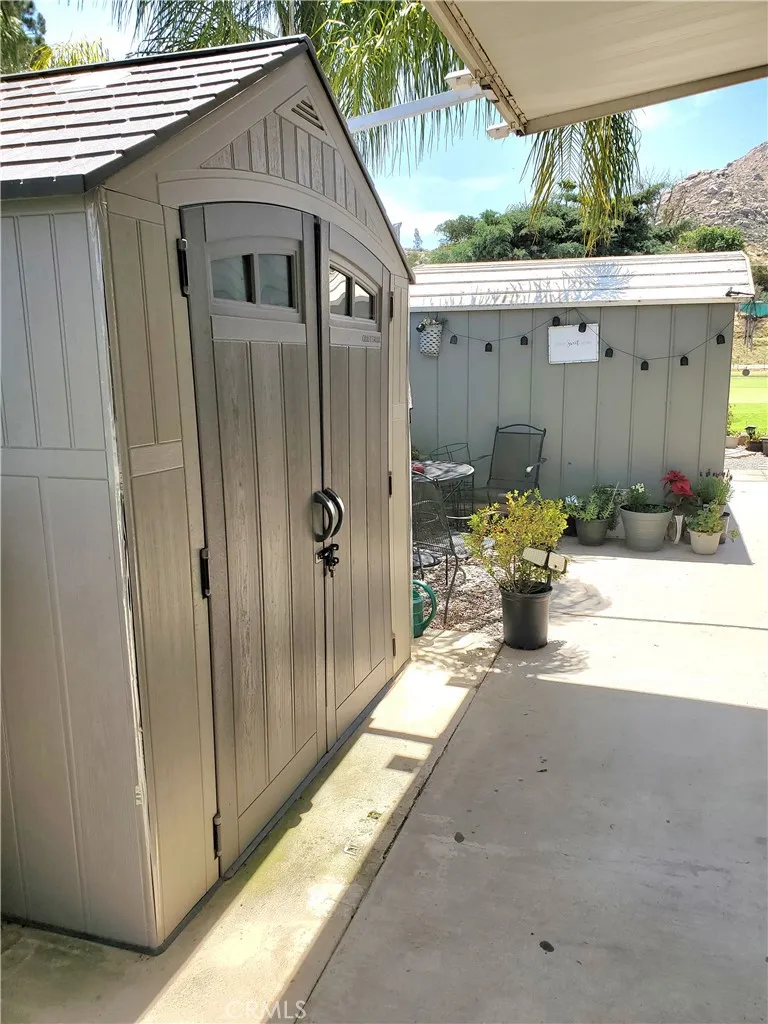 YOU OWN THE LAND! NO GREENS FEES & SITS AT THE 7TH HOLE OF THE METICULOUSLY KEPT GOLF COURSE! Gorgeous views all day long will be enjoyed from your large double-paned UV picture windows across the back of this fully remodeled home. The previous owner was a contractor and took it down to the studs. You will enjoy the peace of mind of New Wiring, New Plumbing, New HVAC, New A/C, New ROOF and more. The kitchen is a chef's delight with New Farm Sink, soft close drawers, 5 burner range with 1 central power/grilling burner and a large custom wood-top island with breakfast seating. There is also a formal dining area with a beautifully Coffered Ceiling and designer light. There is Crown Molding and tall baseboards throughout giving this home a modern elegance. The windows are double-paned for energy efficiency and there are ceiling fans, custom blinds and lovely plank flooring in the main areas, tile in the kitchen and baths. Both bedrooms have an attached bathroom, while the one considered the primary is larger and has a skylight in the bathroom and extensive closet area with an organizer in one section. The enclosed front porch was designed the same as the interior of the house and has an electric fireplace, double-paned windows and a closet. It's great for a home office, den or a stylish foyer to welcome your guests. This home has Cement Siding for fire safety and a large, covered car port and 2 well-kept sheds for extra storage. There is a quaint seating area with raised barstools overlooking the golf course. What a great place for your morning coffee or afternoon tea. This hom