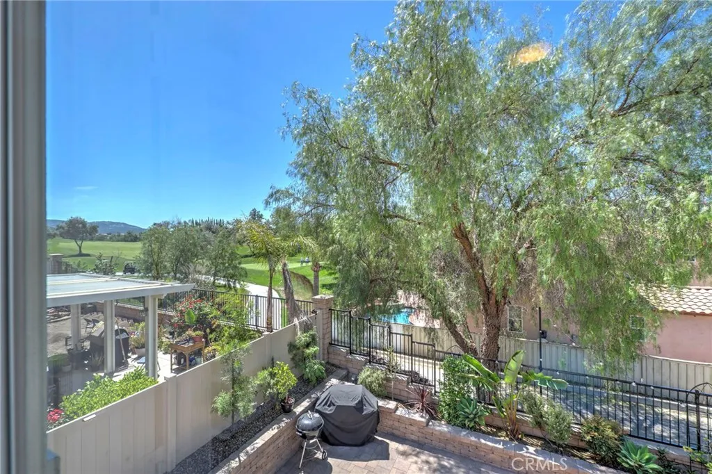 Beautifully upgraded Redhawk golf course home offering 5 bedrooms, 3 bathrooms, and approximately 2,916 square feet, ideally located in one of South Temeculas most sought-after communities. Perfectly positioned along the 16th fairway, this home captures scenic golf course, tree, mountain, and peek-a-boo views from a thoughtfully landscaped setting. The desirable two-story floor plan features a main-floor bedroom and full bath, spacious open living areas, and extensive upgrades throughout. The redesigned kitchen seamlessly opens to the family room and showcases an expanded island with seating, quartz countertops, stylish backsplash, soft-close cabinetry, and an enlarged walk-in pantry, creating both functionality and a modern aesthetic. Interior enhancements include new wood laminate, tile, and carpet flooring, added recessed lighting, refinished cabinetry with upgraded countertops and undermount sinks, plantation shutters, coordinated ceiling fans, custom closets in every bedroom, updated bathroom tile, a custom linen cabinet in the primary suite, and a custom barn door at the laundry room. Additional improvements include upgraded switches and outlets, overhead garage storage, plus a newer A/C system and water heater. The exterior has been thoughtfully upgraded for both beauty and usability, featuring redesigned landscaping, new retaining walls and planters, and extensive paver hardscaping across the side and backyard. A custom patio cover with lighting, ceiling fans, outlets, and gutters creates an inviting outdoor living space, ideal for relaxing or entertaining. Addition