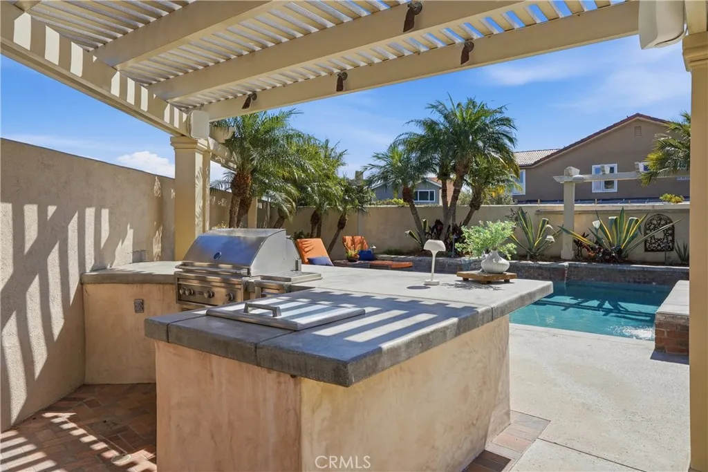 Welcome to a rare luxury opportunity ideally situated on a quiet cul-de-sac steps from the Bolsa Chica Wetlands with direct access to scenic trails leading to the beach. Set on an oversized lot with no neighbors behind, the backyard is designed for ultimate privacy and entertaining, This backyard is like having your own private resort which includes a stunning pool with oversized jacuzzi. built-in BBQ area, patio with bar seating, outdoor speakers, outdoor shower, and a large grass side yard great for kids or pets. There is an additional patio area through the living room french doors, separate from the rest of the backyard. Inside, this home features real wood flooring, abundant natural light enhanced by skylights, and two gas fireplaces creating warm, inviting living spaces. This residence offers the highly sought-after main floor bedroom and full bath, perfect for multigenerational living or guests. The chefs kitchen is a true centerpiece, showcasing quartz countertops, a large island with bar seating, double ovens, walk-in pantry, pull-out coffee station, wine fridge, and a separate beverage center, blending functionality with modern luxury. Upstairs, the expansive primary suite offers a private retreat with a massive walk-in closet outfitted with custom California Closet cabinetry and a spa-inspired en-suite bath featuring dual vanities. Additional highlights include a dual-zone climate control, separate laundry room with sink and a 3-car garage with epoxy flooring and built-in cabinetry. This is Southern California coastal living at its finest.