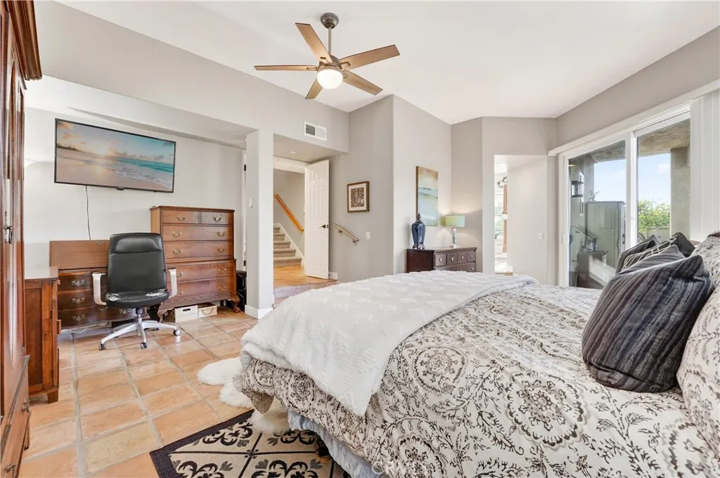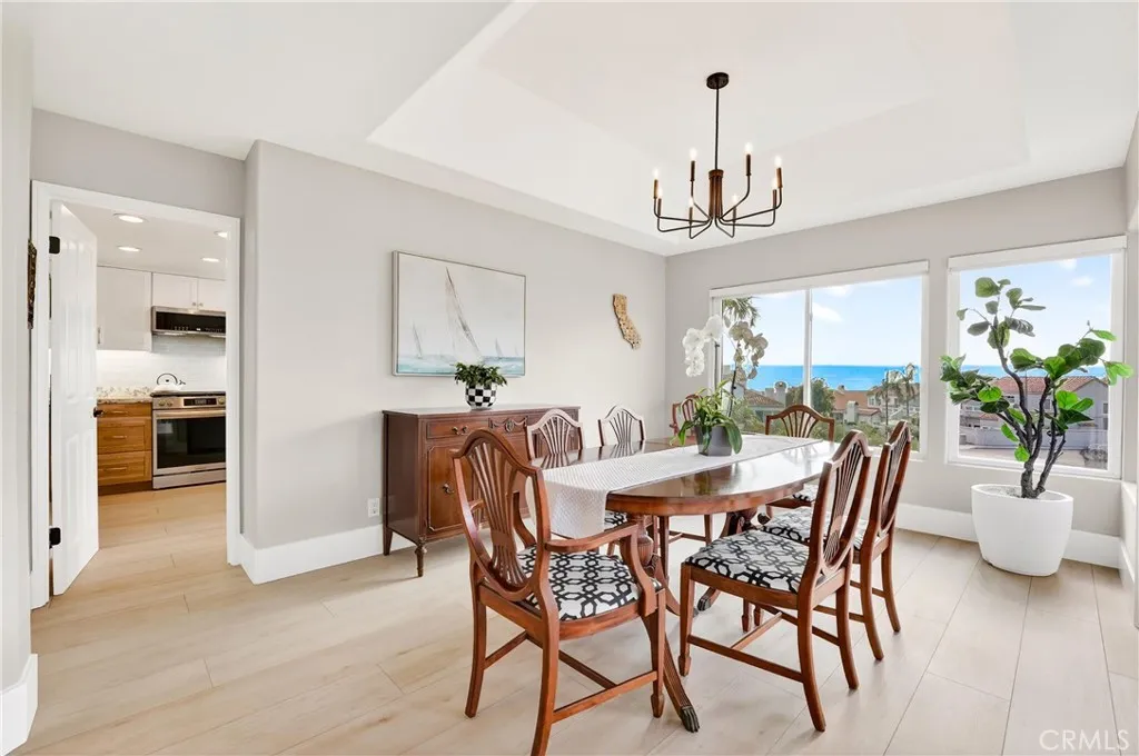 Experience elevated coastal living in Laguna Sur, a guard gated community with 24 hour security, offering privacy and peace of mind. From the moment you enter, you are greeted by breathtaking ocean views, walls of windows, and an abundance of natural light, with daily sunsets over the Pacific and Catalina Island enjoyed from the main living areas and expansive outdoor deck. The beautifully remodeled kitchen is a true focal point, featuring leathered granite countertops, a wine refrigerator, and a sophisticated wet bar, flowing seamlessly into the dining area where expansive glass enhances the indoor outdoor connection. Sliding doors open to a spacious deck with stairs leading to an oversized backyard on a desirable corner lot, designed for entertaining with a large island for cooking and gathering and multiple access points from both the kitchen and the downstairs primary suite. The living area is anchored by a redesigned fireplace that makes an immediate impression, complemented by light porcelain tile flooring and thoughtful storage throughout. The flexible floor plan offers three bedrooms plus a loft or office with a built in desk, including two separate primary suites with ensuite baths and ocean views, positioned apart for ideal privacy, with the downstairs primary offering direct backyard access. The property offers exceptional parking with the ability to accommodate up to six vehicles between the garage and driveway. Residents enjoy resort style amenities including two pools, spas, tennis courts, pickleball courts, and scenic walking trails extending to Laguna Beach.