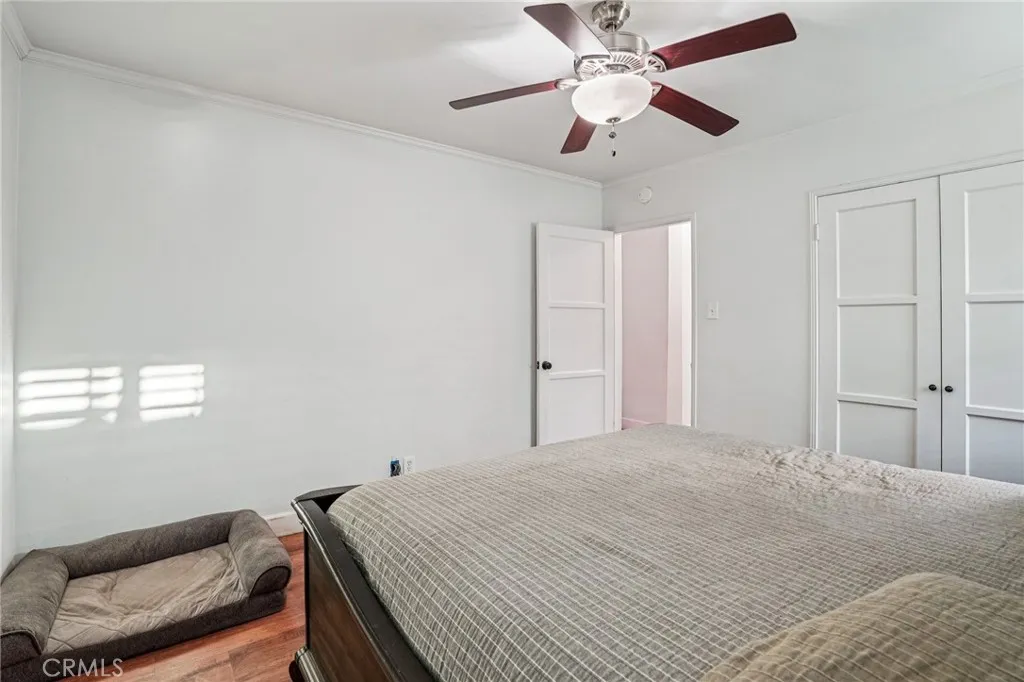 Welcome to this charming home located in the highly desirable Palm Park area. This well-maintained 2-bedroom, 1-bath residence offers 1,121 sq ft of comfortable living space on a generous 6,627 sq ft lot. Inside you'll find beautiful hardwood floors, custom kitchen cabinetry with granite countertops, separate dining area with French doors leading to the backyard, an elegant bay window and plantation shutters that add warmth and character throughout. The home features a functional layout with abundant natural light, a tankless water heater, and upgraded windows. Step outside to a spacious backyard perfect for entertaining. The detached 2-car garage offers ample parking and storage, while a separate backyard shed has been thoughtfully converted into a private office-ideal for remote work or creative space. Property is located near Palm Park, a vibrant recreational facility offering a range of recreational activities: an aquatic center, tennis courts, basketball courts, a playground, walking paths, biking trails, picnic areas and more. Additionally, it is conveniently located near shopping and dining at The Groves, Uptown Whittier, and the Quad and just minutes from FWY access.