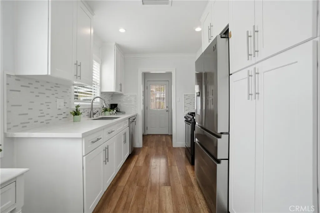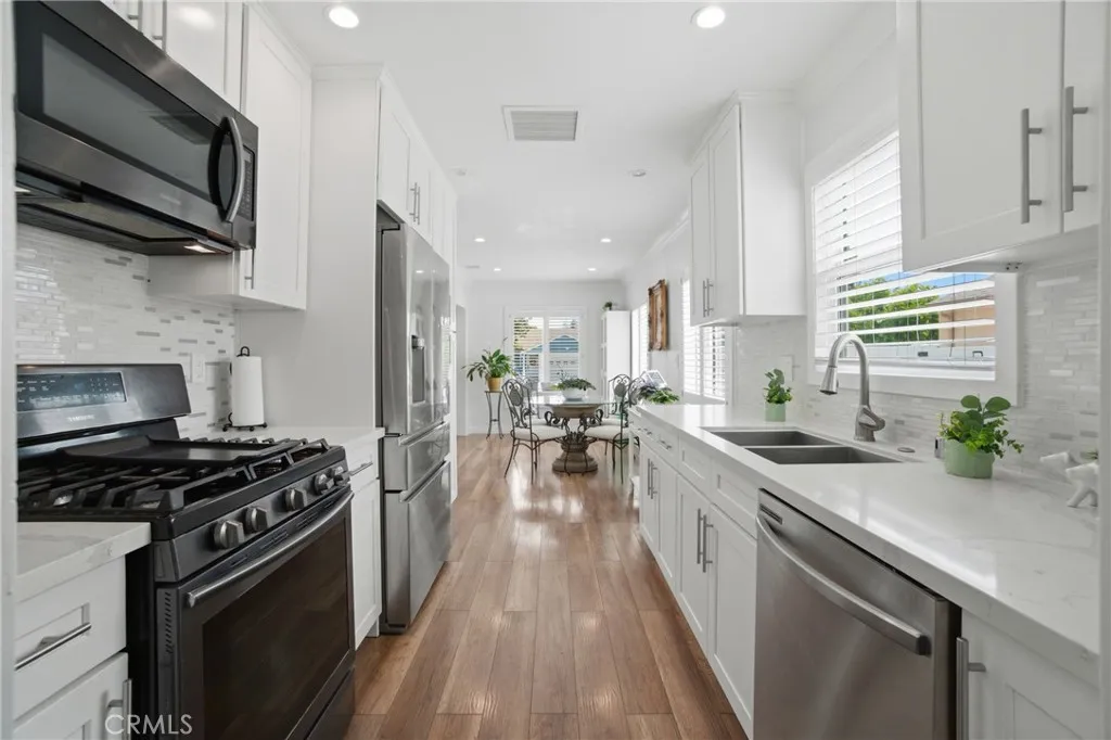 Beautifully maintained and thoughtfully updated, this turn-key Encino Park home is located on a quiet, tree-lined street in a highly desirable neighborhood. Filled with natural light, the home offers a bright and inviting layout with quality upgrades throughout. The spacious living room features a large picture window overlooking the front yard, while the updated kitchen includes newer cabinetry, stainless steel appliances, quartz countertops, and a seamless flow into the dining area. The flexible floor plan offers well-sized bedrooms, a full bath on the main level, and a spacious upstairs primary suite with dual closets, an en-suite bath, and a private enclosed patio. The family room features high ceilings, a cozy fireplace, and French doors leading to a peaceful backyard with mature fruit trees and space to relax or entertain. Ideally located near the 101 and 405 freeways, with easy access to parks, shopping, and dining. A true move-in ready home showcasing pride of ownership throughout. Homes like this rarely come to marketcome see it in person and experience it for yourself.