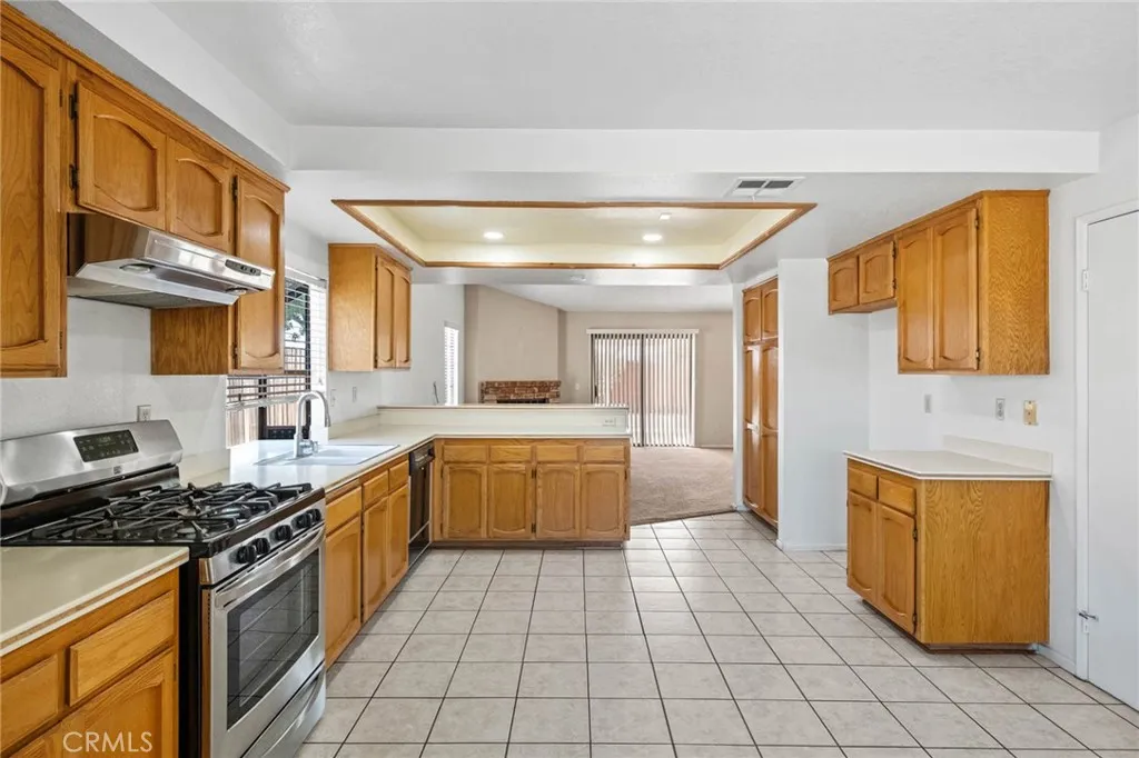 Spacious 3-bedroom, 2-bathroom single-story home with a functional and open layout! This home features a bright living and dining area with vaulted ceilings and a cozy brick fireplaceperfect for relaxing or entertaining. The spacious kitchen offers ample cabinetry, generous counter space, and a breakfast bar that opens to the main living area for easy everyday living. The primary suite provides a comfortable private retreat with an en-suite bathroom featuring dual sinks and a walk-in shower, while the additional bedrooms offer flexibility for guests, family, or a home office. Additional highlights include a convenient indoor laundry room and gated side access with potential RV parking, offering added flexibility for storage or recreational vehicles. Step outside to a generously sized backyard with a covered patioideal for outdoor dining, entertaining, or relaxing. The yard offers a blank canvas with low-maintenance landscaping and plenty of space to customize to your needs. The front yard features low-maintenance desert landscaping, along with a wide driveway and 2-car garage. Located in an established neighborhood with convenient access to local amenities, this home is ready for its next owner!